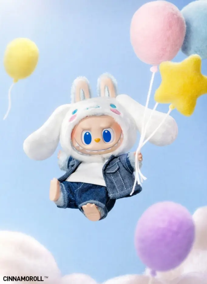 - Une vibe incomparable : Marre des objets sans âme ? Ici, tu as le meilleur des deux mondes. Le caractère audacieux de Labubu, avec ses grands yeux bleus et son sourire malicieux, rencontre la douceur infinie de Cinnamoroll. Le tout dans une mise en scène poétique où il flotte parmi les nuages, tenant des ballons pastel. C’est la touche d’originalité parfaite pour affirmer ton style.
